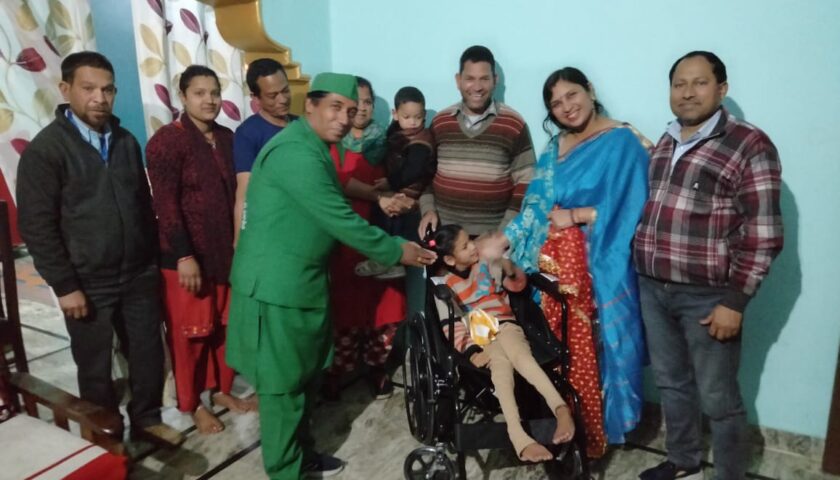 देहरादून: जीवन तभी सफल हैं जब हम इस धारा में मानव सेवा कर सके। पर्यावरणविद् वृक्षमित्र डॉ त्रिलोक चंद्र सोनी के सहयोग से अभ्युदय वात्सल्यम संस्था,(जो अनेक राज्यों में सेवारत है), के संस्थापक डॉ अशोक कुमार मिश्र “क्षितिज” व अध्यक्ष व निदेशक डॉ गार्गी मिश्रा ने देहरादून, फुलसैनी निवासी सतेंद्र सिंह राणा व रजनी राणा की दिव्यांग पुत्री अनन्या राणा को व्हील चीयर भेंट की। नारी शक्ति को बढ़ावा देते हुए नवरात्रों पर अनन्या को शॉल ओढ़ाकर सम्मानित किया।