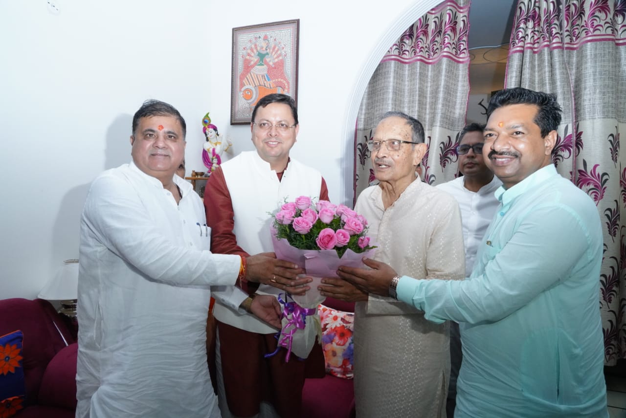 मुख्यमंत्री पुष्कर सिंह धामी ने पूर्व मुख्यमंत्री मे ज भुवश चन्द्र खन्डूरी को आवास पर पहुंचकर दी जन्मदिन की बधाई