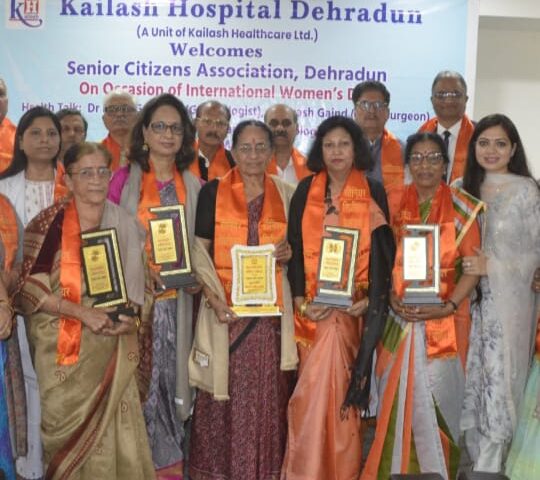 हरिद्वार रोड स्थित कैलाश हास्पिटल में आयोजित सम्मान समारोह में मुख्य अतिथि के रूप में कैंट विधायक श्रीमती सविता कपूर, कैलाश हास्पिटल के वरिष्ठ चिकित्सकों के साथ सीनियर सिटीजन वेलफेयर सोसायटी के पदाधिकारी व परिवारों के सदस्यगण उपस्थित रहे।