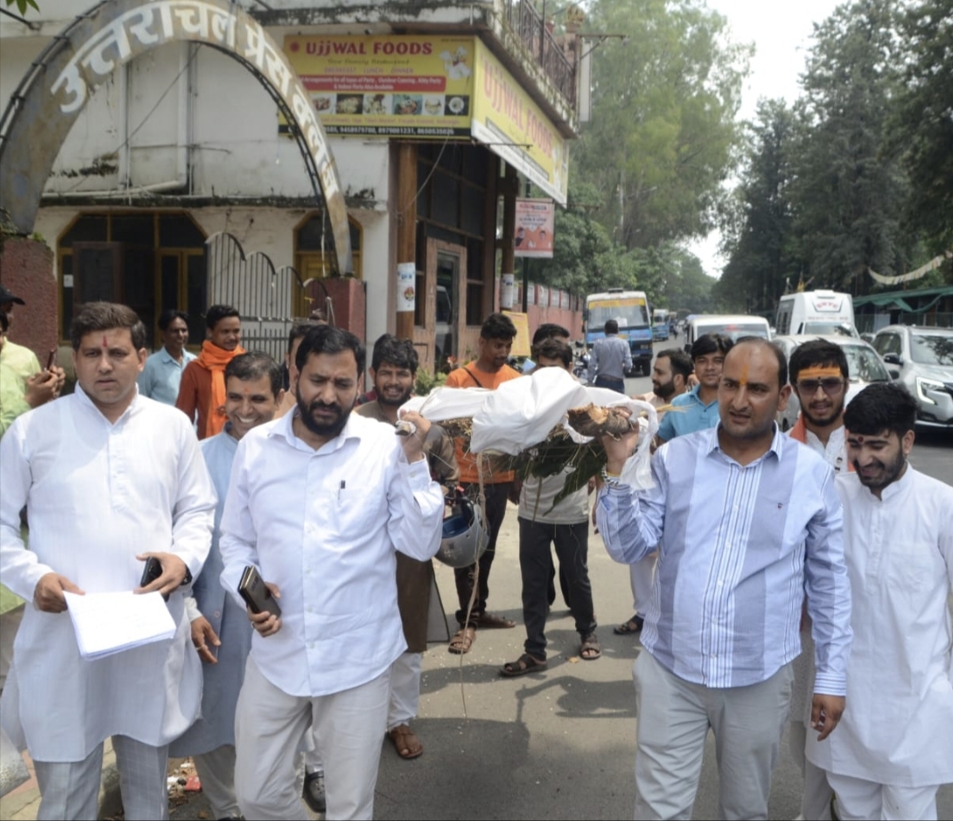 संत पुण्यानंद गिरी द्वारा ब्राह्मण समाज के विरुद्ध अभद्र टिप्पणी के विरोध मे पर्वतजन फाउंडेशन के बैनर तले निकाली गई शवयात्रा