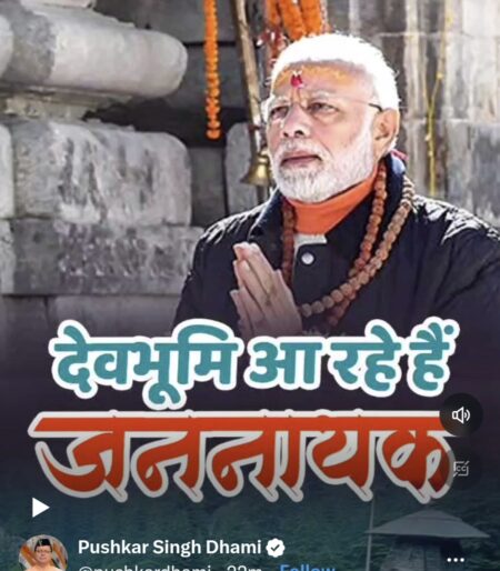 “देवभूमि आ रहे हैं जननायक” की टिव्टर पर टैग लाइन देते हुए मुख्यमंत्री पुष्कर सिंह धामी ने की प्रधानमंत्री नरेन्द्र मोदी के अभूतपूर्व स्वागत की तैयारी