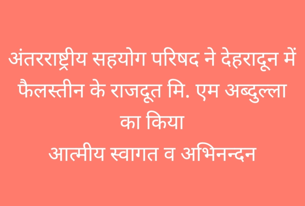 अंतरराष्ट्रीय सहयोग परिषद ने फैलस्तीन‌ के राजदूत मि. एम अब्दुल्ला का किया स्वागत : भारत के वसुधैव कुटम्बकम की प्रभावी व्याख्या की