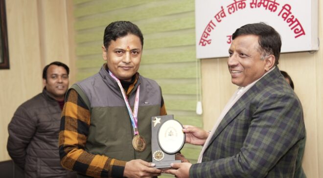 उपरोक्त विचार महानिदेशक सूचना तिवारी द्वारा सूचना कर्मचारी संघ द्वारा आयोजित प्रथम इंडोर खेल प्रतियोगिता के सभी विजयी प्रतिभागियों को पुरस्कार एवं मेडल प्रदान करने के अवसर पर व्यक्त किए। महानिदेशक ने कहा कि हम सभी को अपनी जीवनशैली में योग और खेल को शामिल करना चाहिए। हमें अपनी जीवनशैली में बढ़ते तनाव को कम करने के लिये नियमित रूप से व्यायाम करना चाहिए।
