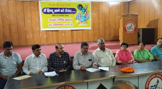 देहरादून -उत्तराखंड प्रदेश के समस्त हिंदू भाईयों , महिला शक्तियों को बड़े हर्ष के साथ सूचित करना है कि हम अपने देवभूमि उत्तराखंड की राजधानी देहरादून जिले के हिंदू समाज के प्रत्येक व्यक्ति को संगठित एवं सशक्त करने के उद्देश्य से हमने एक सामाजिक संगठन “जय श्री वराह देव : मैं हिंदू आने को तैयार” का निर्माण किया है। जिसमें देहरादून को पांच ज़ोन “(NORTH, SOUTH, CENTRAL, EAST ,WEST)” में समायोजित किया गया है ताकी हर क्षेत्रों के अधिक से अधिक अपने हिंदू समाज के व्यक्तियों को एक ही धागे में पिरो कर एकजुट किया जा सकें। संगठन का मुख्य उद्देश्य यह है, कि हमारी लुप्त होती अपनी हिंदू सनातन संस्कृति को पुनः जागृत करना और किसी भी आपात संकट के समय एक दूसरे के साथ खड़े होकर सहायक बनना, साथ ही हमारा हिंदू समाज आपस में आर्थिक रूप से मजबूत एवं आत्मनिर्भर बन सकें ,उसके लिए “हिंदुओं का आपसी व्यापार” नामक संगठन का भी निर्माण किया गया है I संगठन का मानना है कि जब तक संस्कृति एवं संस्कार परस्पर साथ साथ गतिमान रहेंगे तब तक जीवन में अनुशासन, मधुरता एवं सार्थकता बनी रहेगी।