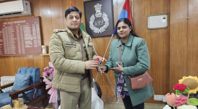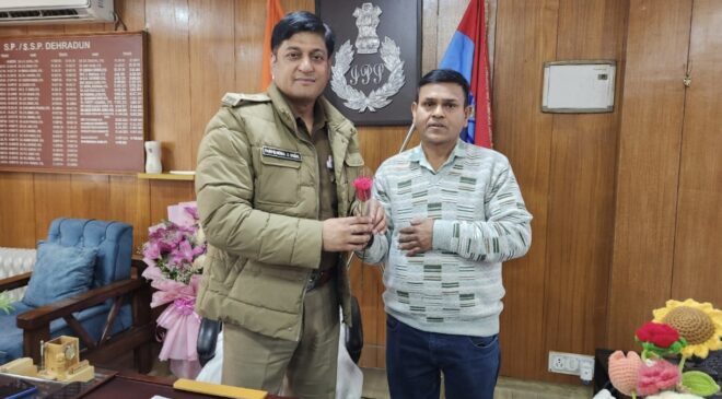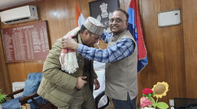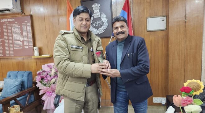 देहरादून -लघु समाचारपत्र एसोसिएशन ने नवागंतुक वरिष्ठ अधिकारियों के स्वागत की परम्परा के क्रम में आज नवागंतुक पुलिस कप्तान प्रमेन्द्र डोभाल से शिष्टाचार भेंट कर उनका जोरदार स्वागत किया गया।
