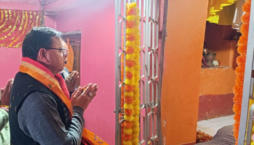 मुख्यमंत्री धामी, मां भगवती मंदिर प्रांगण में ग्रामीणों के साथ खड़ी होली गायन व देव स्तुति में शामिल हुए।