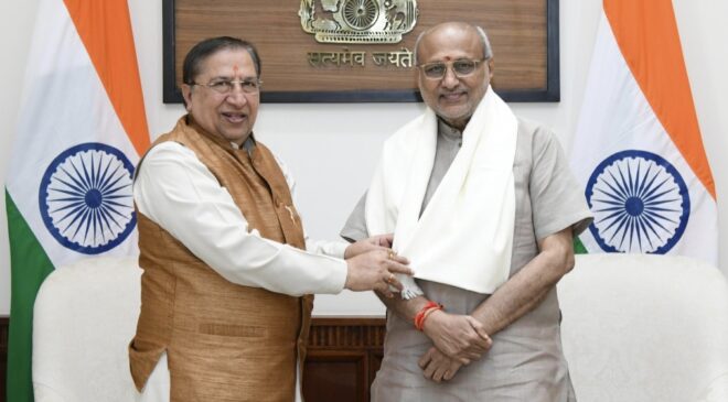 देहरादून/नई दिल्ली-भाजपा के राष्ट्रीय सह-कोषाध्यक्ष व सासंद राज्यसभा डा.नरेश बंसल ने उपराष्ट्रपति सी.पी.राधाकृष्णन से शिष्टाचार भेंट कर उन्हें दीपावली की शुभकामनाएं दी। शाल व पुष्प गुच्छ भेंट कर माननीय उप राष्ट्रपति जी का अभिनंदन किया।