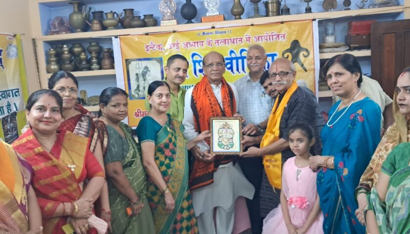 उरई। श्री शिवजी को अति प्रिय श्रावण मास के प्रथम सोमवार को इन्टैक उरई अध्याय, प्रान्तीय कला धरोहर समिति संस्कार भारती और भारत विकास परिषद स्वामी विवेकानंद शाखा के संयुक्त तत्वावधान में भगवान श्री शिवजी की वीथिका का उद्घाटन शंख ध्वनि के मध्य पूर्व कमिश्नर ऐक्साईज मुम्बई शम्भूदयाल जी IRS ने प्रथम पूज्य श्री गणेशजी की प्रतिमा के समक्ष पुष्पार्पण तथा दीप प्रज्वलित कर किया।