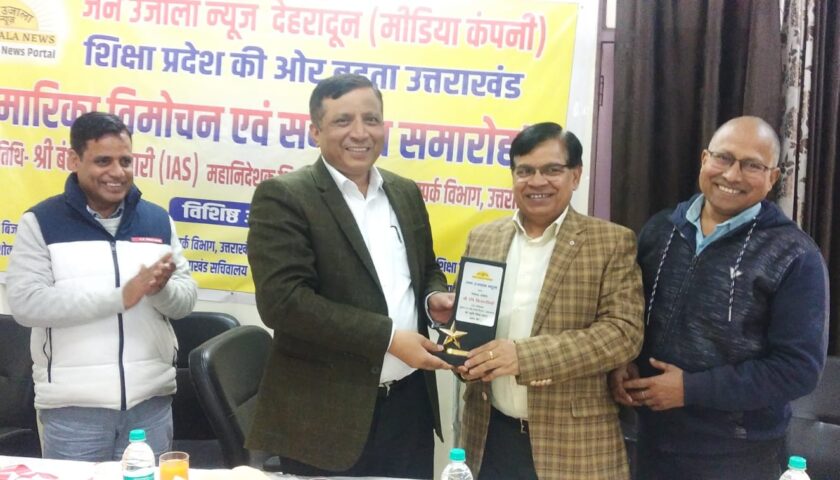 उक्त उदगार शिक्षा एवं सूचना विभाग के महानिदेशक बंशीधर तिवारी जी ने स्वप्निल सिन्हा के संयोजन मे आयोजित”जन उजाला न्यूज़” के स्मारिका विमोचन व सम्मान समारोह को संबोधित करते हुए व्यक्त किए।